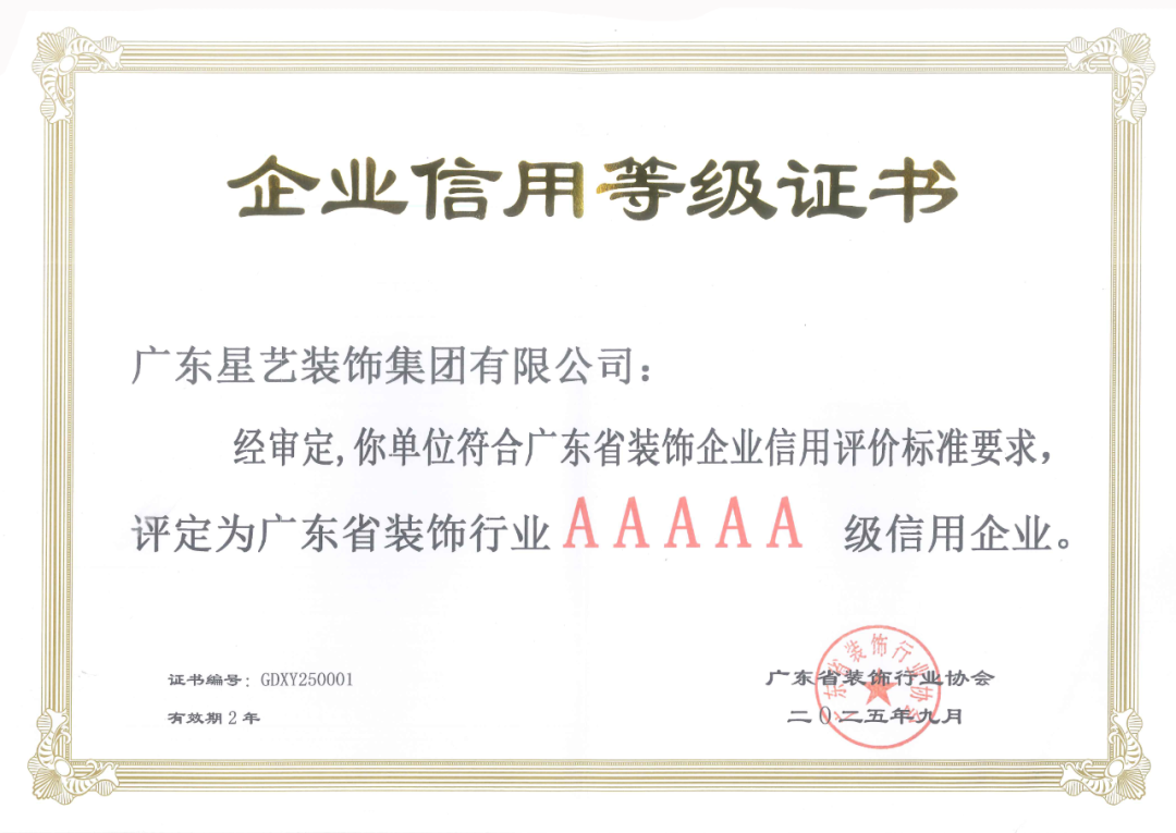 星訊 | 星藝裝飾——廣東省裝飾行業(yè)AAAAA級(jí)信用企業(yè)